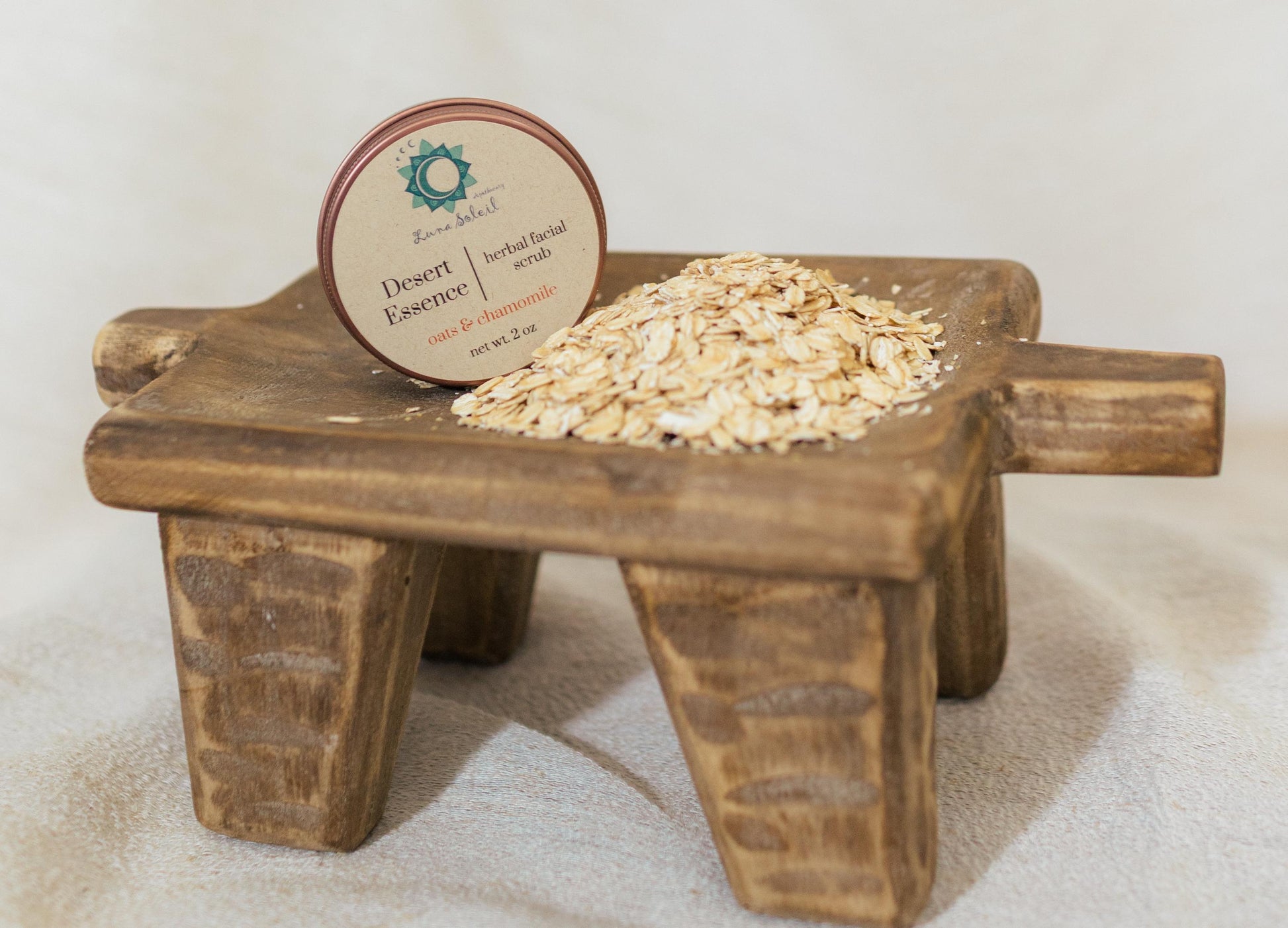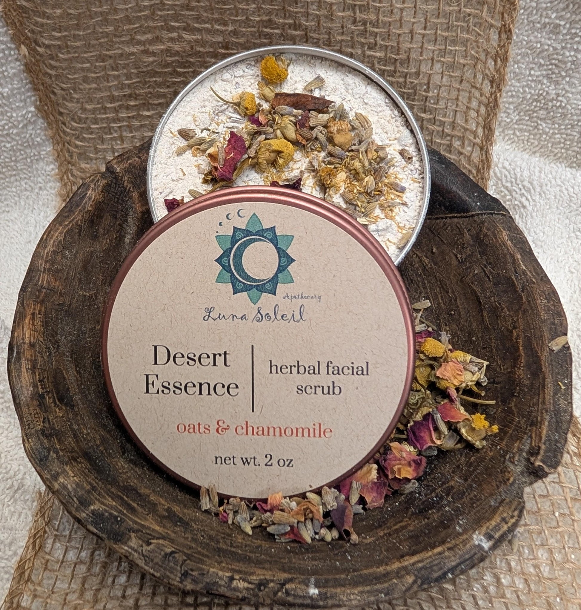 Let the magic of desert plants, Chamomile, Lavender, and Rose, gently exfoliate your skin while mineral rich Bentonite and Kaolin clays detoxify and refresh the face. Colloidal Oat flour adds unbelievable softness to your skin in this nourishing scrub.