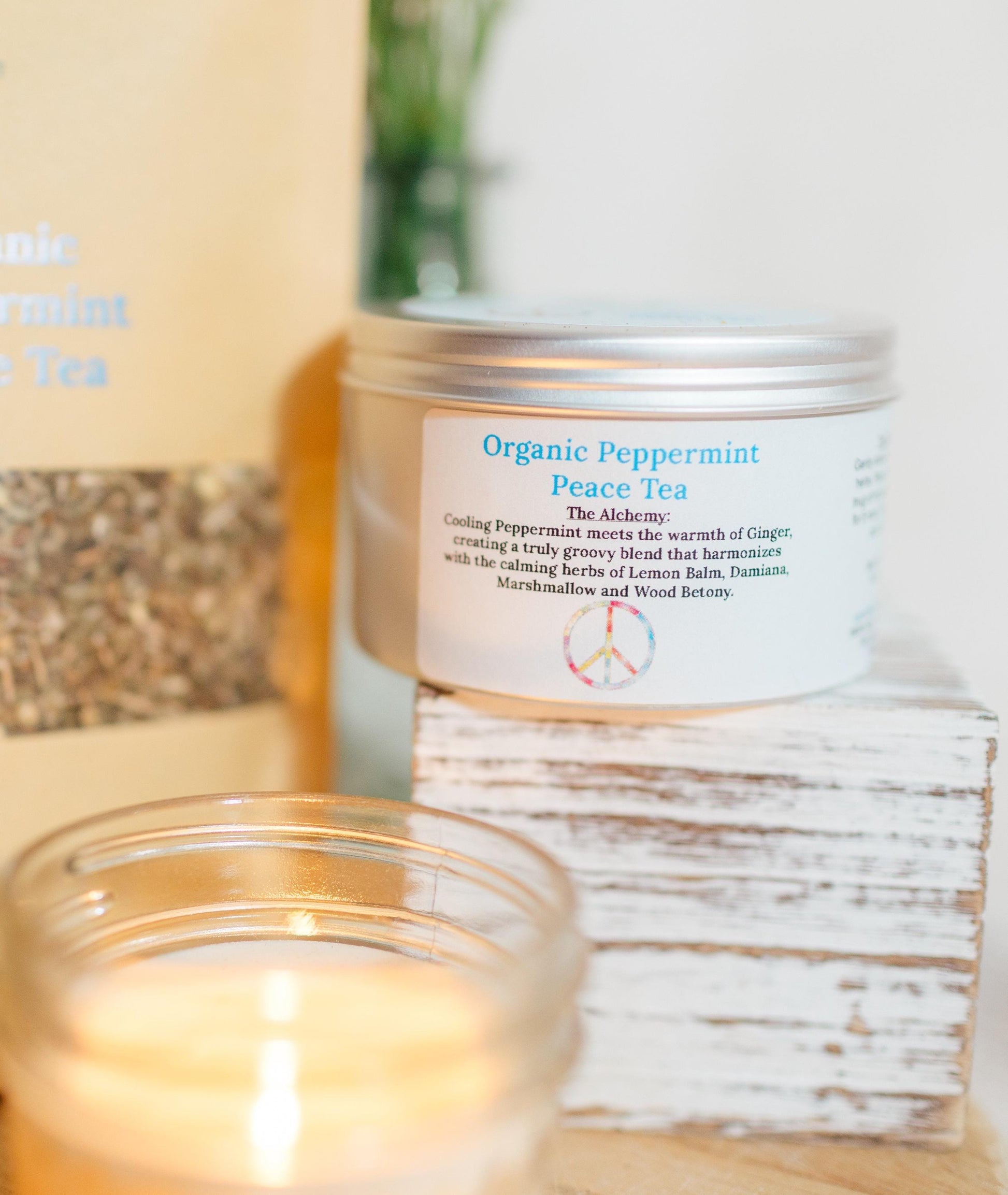 The Alchemy: Cooling *Mentha Piperita (Peppermint leaf) meets the warmth of *Zingiber officinalis (Ginger root), creating a truly groovy blend that harmonizes with calming herbs *Melissa officinalis (Lemon Balm), *Turnera diffusa (Damiana leaf), *Althaea officinalis (Marshmallow root), *Stachys officinalis (Wood Betony), and a pinch of magic.