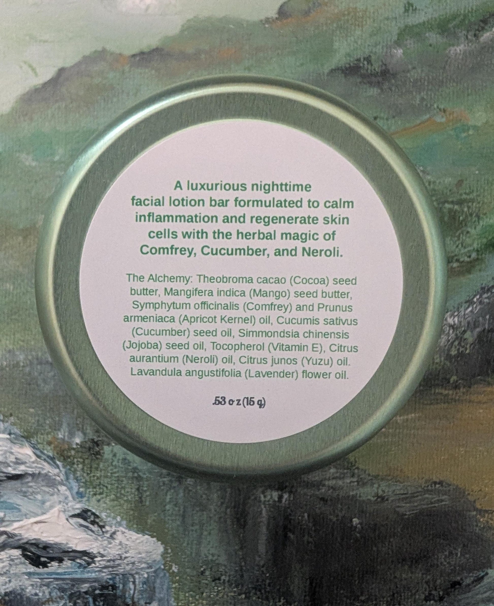 A nighttime facial lotion bar designed to soothe irritated, dry skin as you snooze away.